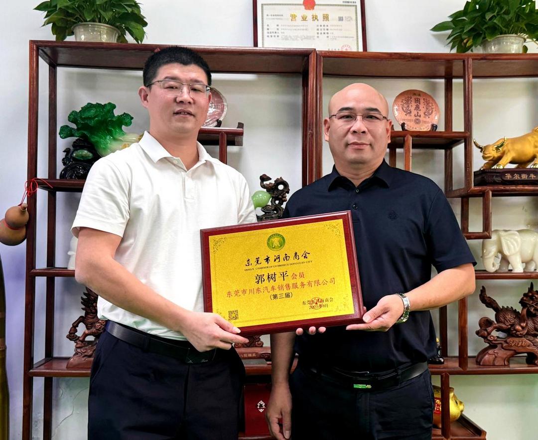 为深化会员服务,促进企业间的资源共享与业务协同,2025年10月27日上午,东莞市河南商会持续开展会员企业走访系列活动。在商会常务副会长、资源对接协会会长郭成、耿前程副会长一行先后莅临东莞市川东汽车销售服务有限公司与东莞市晟佳窗帘窗纱商城有限公司,进行实地参观与交流,并现场举行会员牌匾颁发仪式。