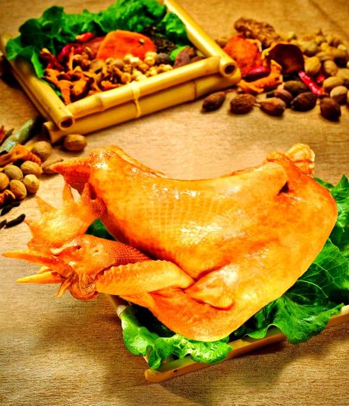 “义兴张”道口烧鸡,中华老字号,国家级非物质文化遗产。其选用健康良鸡,辅以多种名贵中药材与百年老汤,经八道工序精制而成,成品形如元宝,色泽金黄,熟烂离骨,风味独特,是深入人心的国民美食。