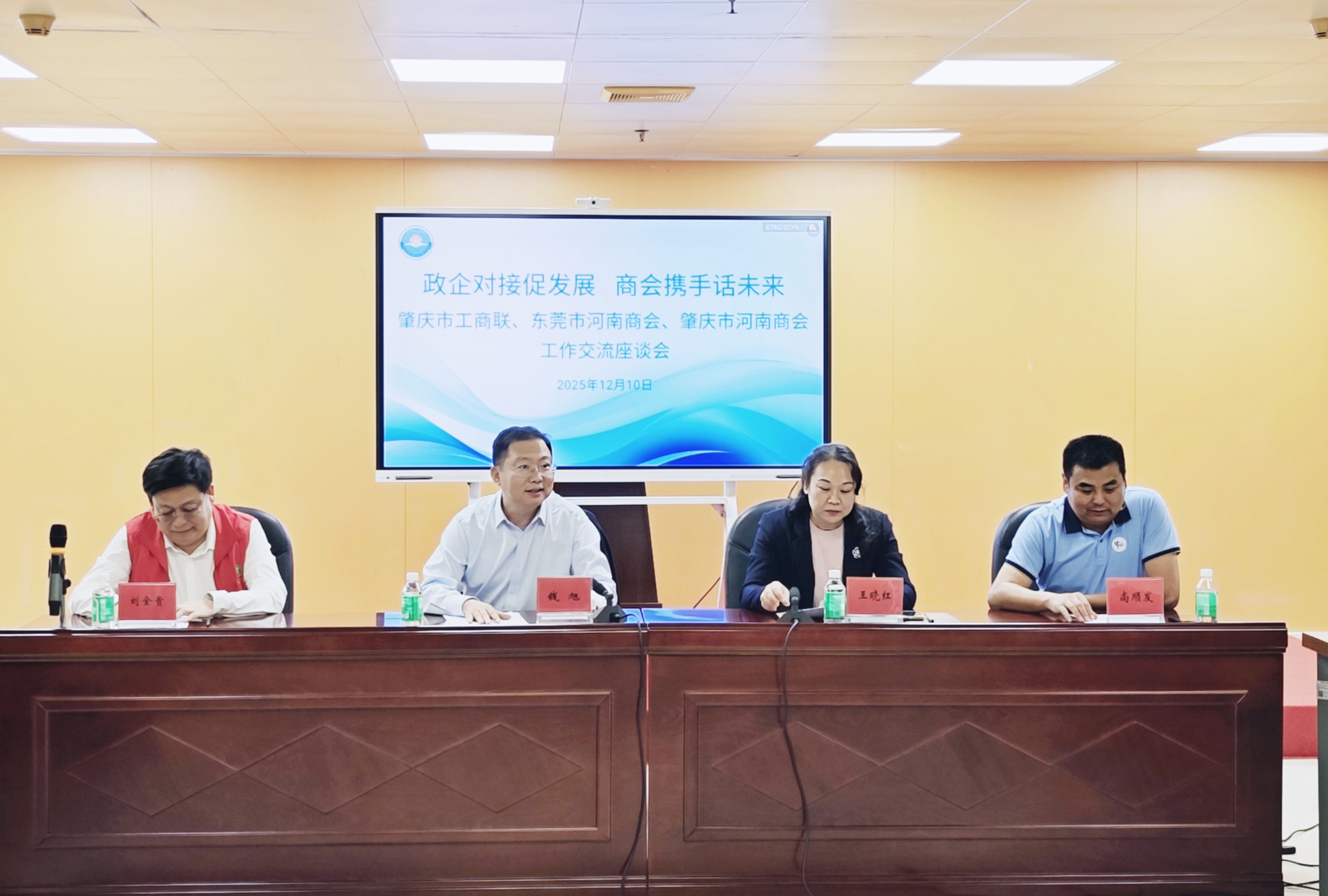 2025年12月10日下午,肇庆市河南商会会长尚顺发、东莞市河南商会会长刘全贵率肇庆、东莞两地豫商企业家代表团联合走进肇庆市工商联,并举行座谈会,共话发展机遇,共谋合作新未来。
